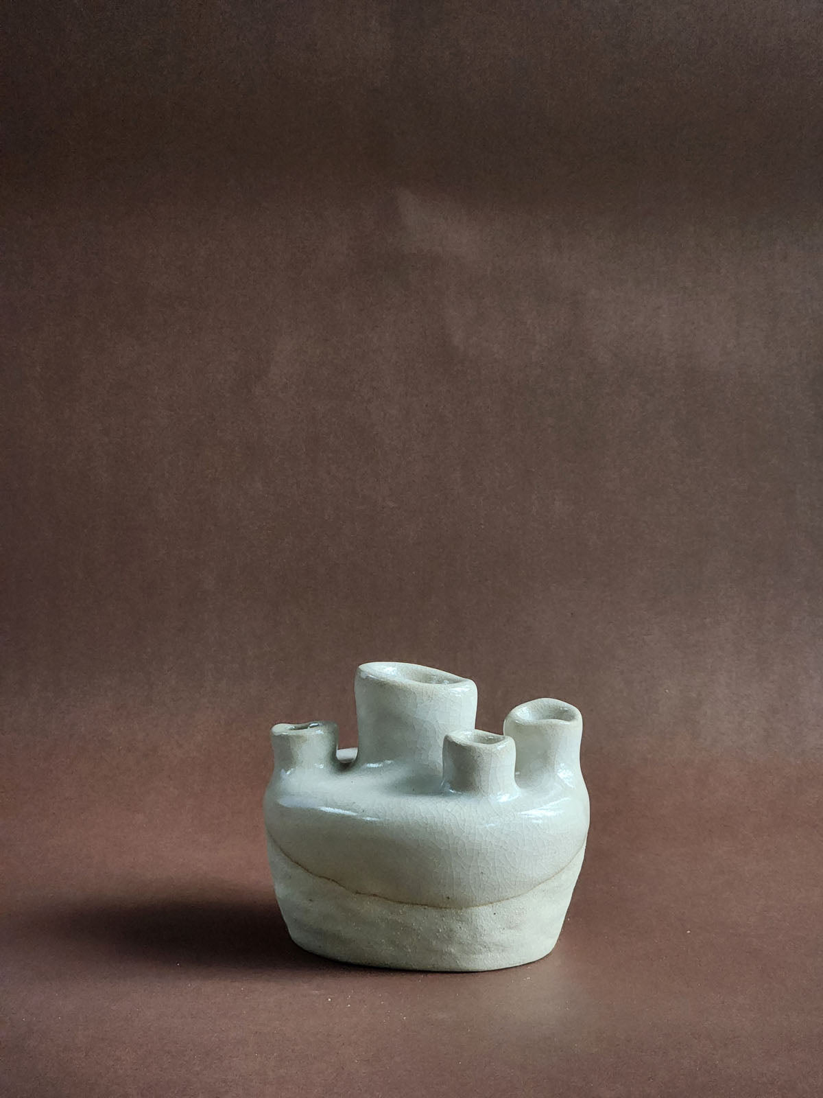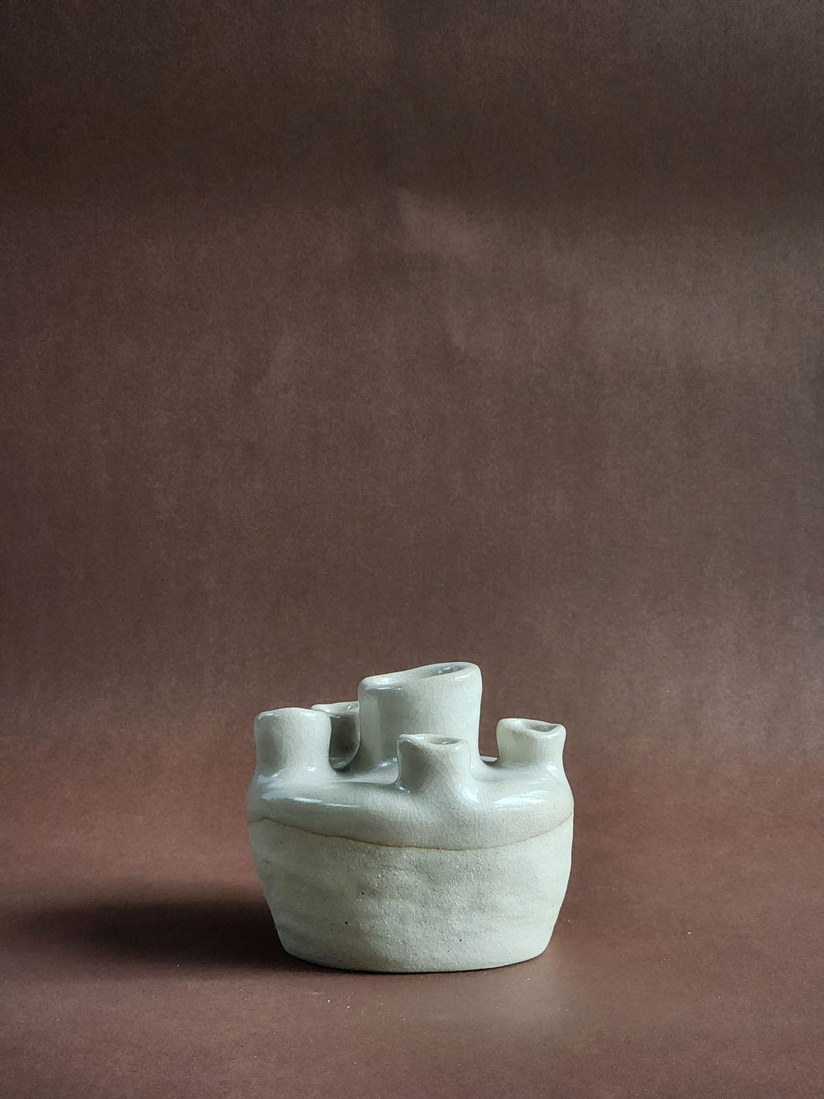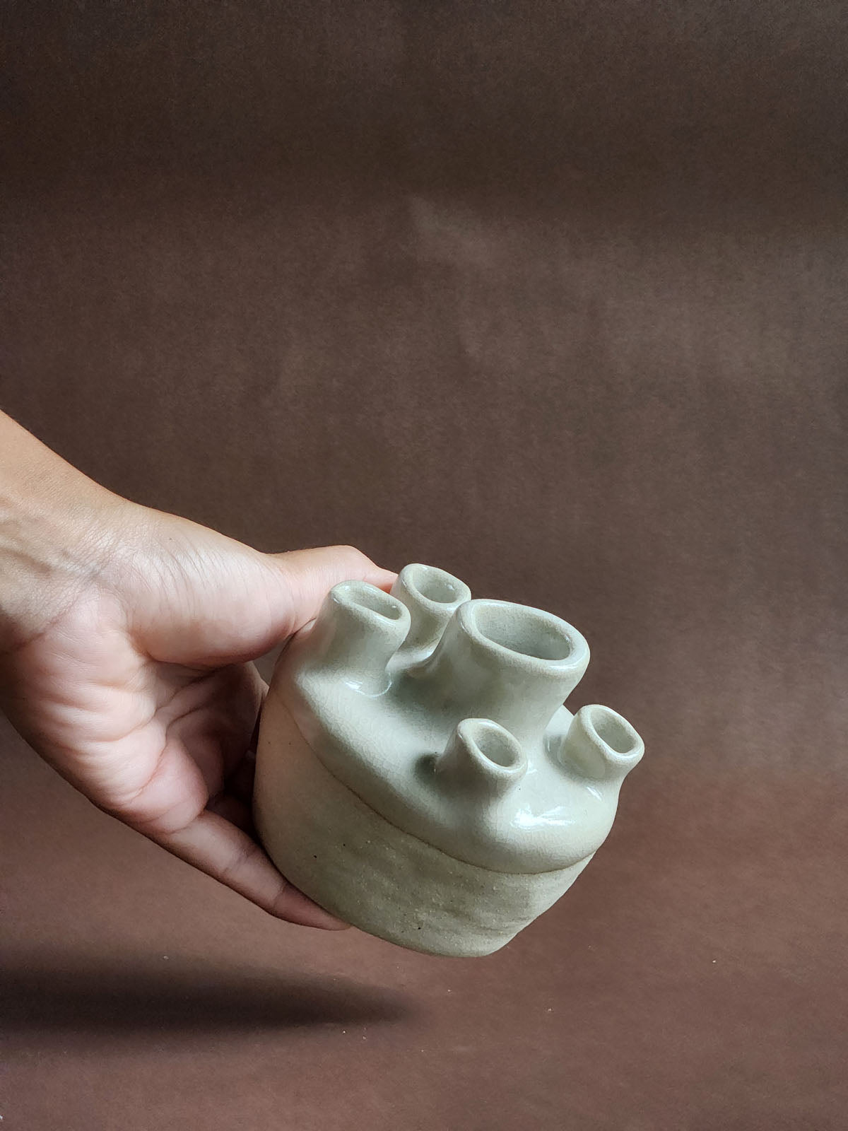 Earth's Offering is a series of vases with multiple pipes and punctures. They are intended to highlight the simplicity of banal, common stems and flowers. The daily-life surroundings. The momentary and the small. A perfect character in an intimate space or a daylit shelf.