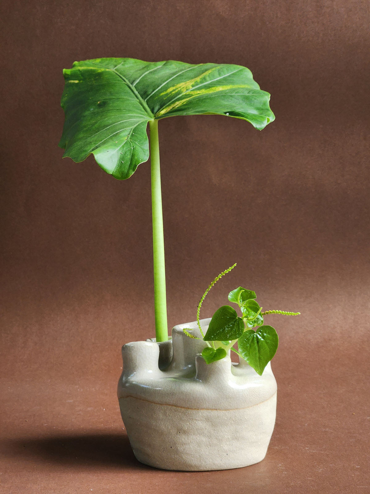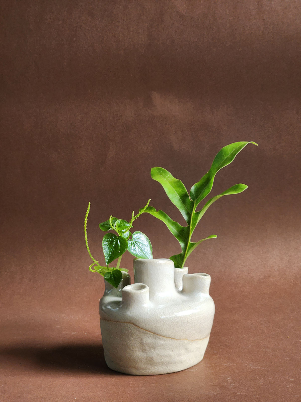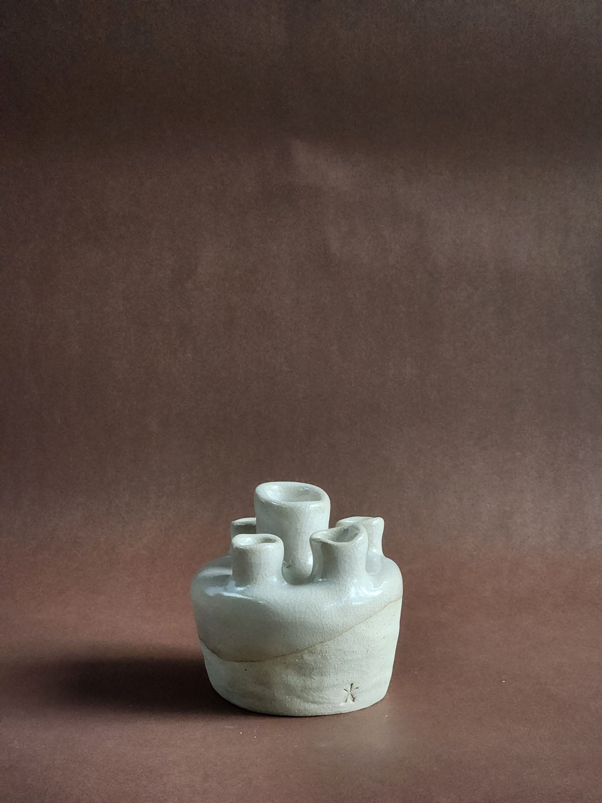 Earth's Offering is a series of vases with multiple pipes and punctures. They are intended to highlight the simplicity of banal, common stems and flowers. The daily-life surroundings. The momentary and the small. A perfect character in an intimate space or a daylit shelf.