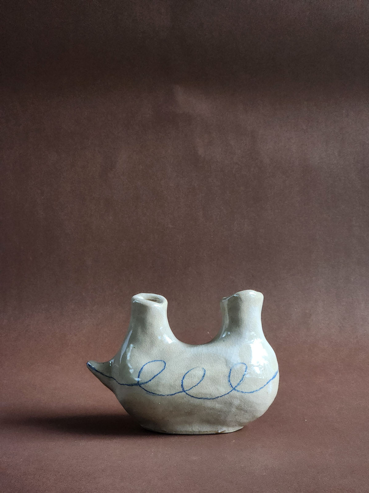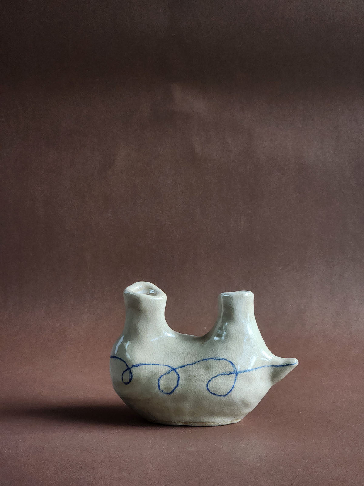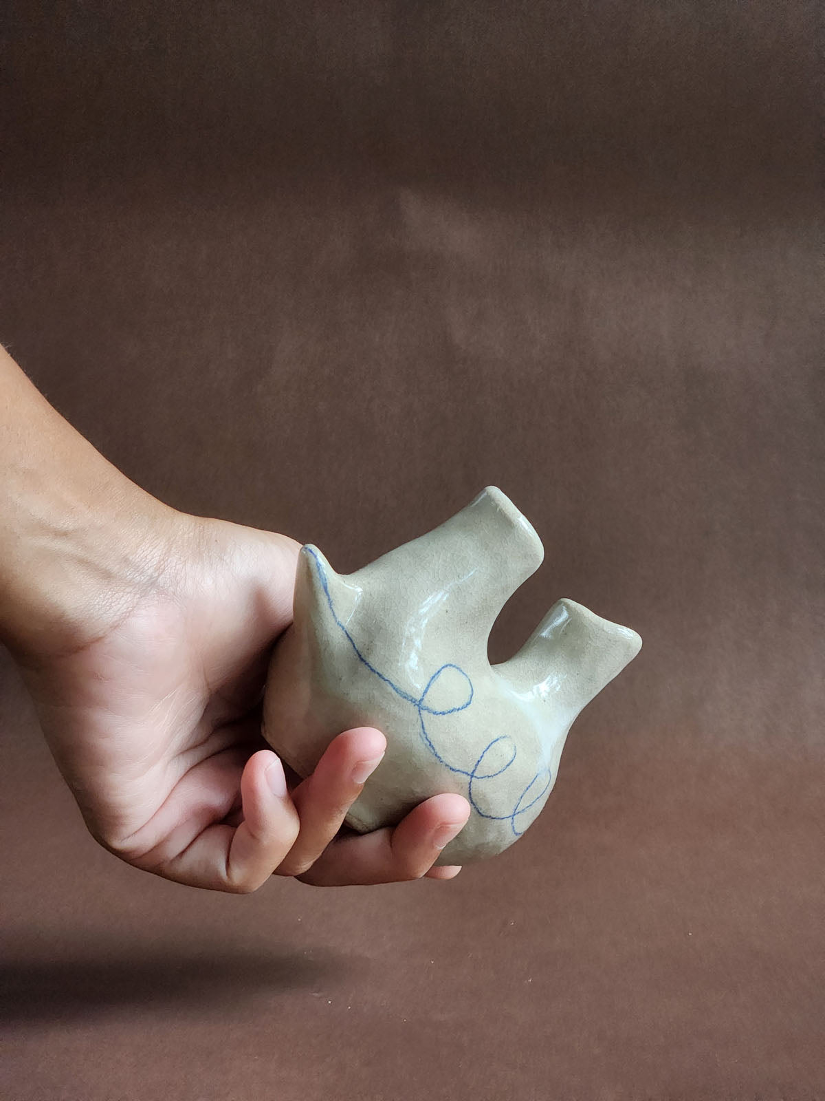 Materials: White stoneware, blue underglaze, glossy clear glaze