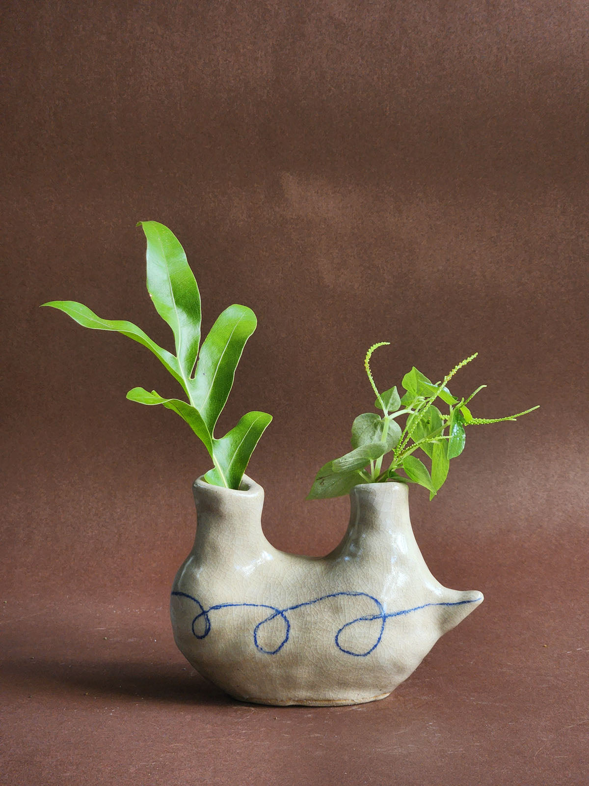 Earth's Offering is a series of vases with multiple pipes and punctures. They are intended to highlight the simplicity of banal, common stems and flowers. The daily-life surroundings. The momentary and the small. A perfect character in an intimate space or a daylit shelf.