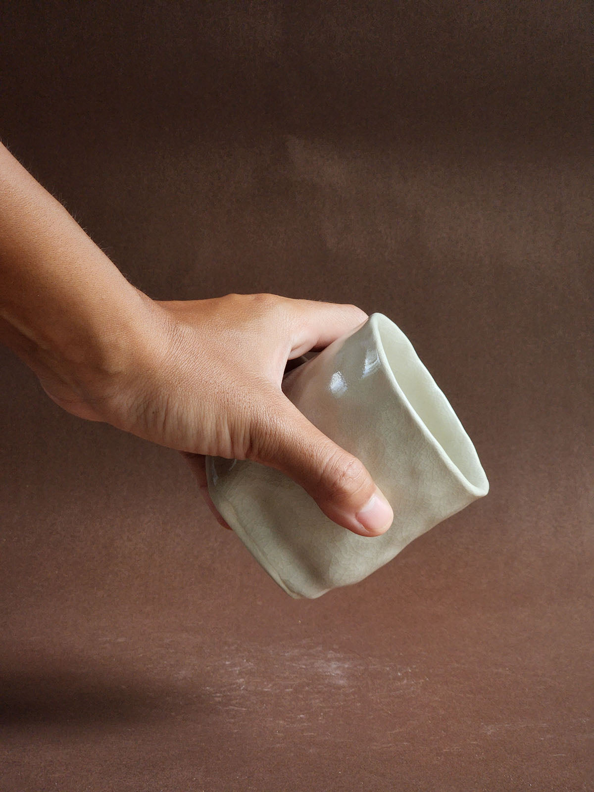 The Obscure Cup is a round-rimmed, square-based cup because apparently, cups contain multitudes too. Each one is handbuilt using clay slabs and repeatedly pinched to create texture and a lovely feel. Every piece has its own unique expression; no two are exactly alike.