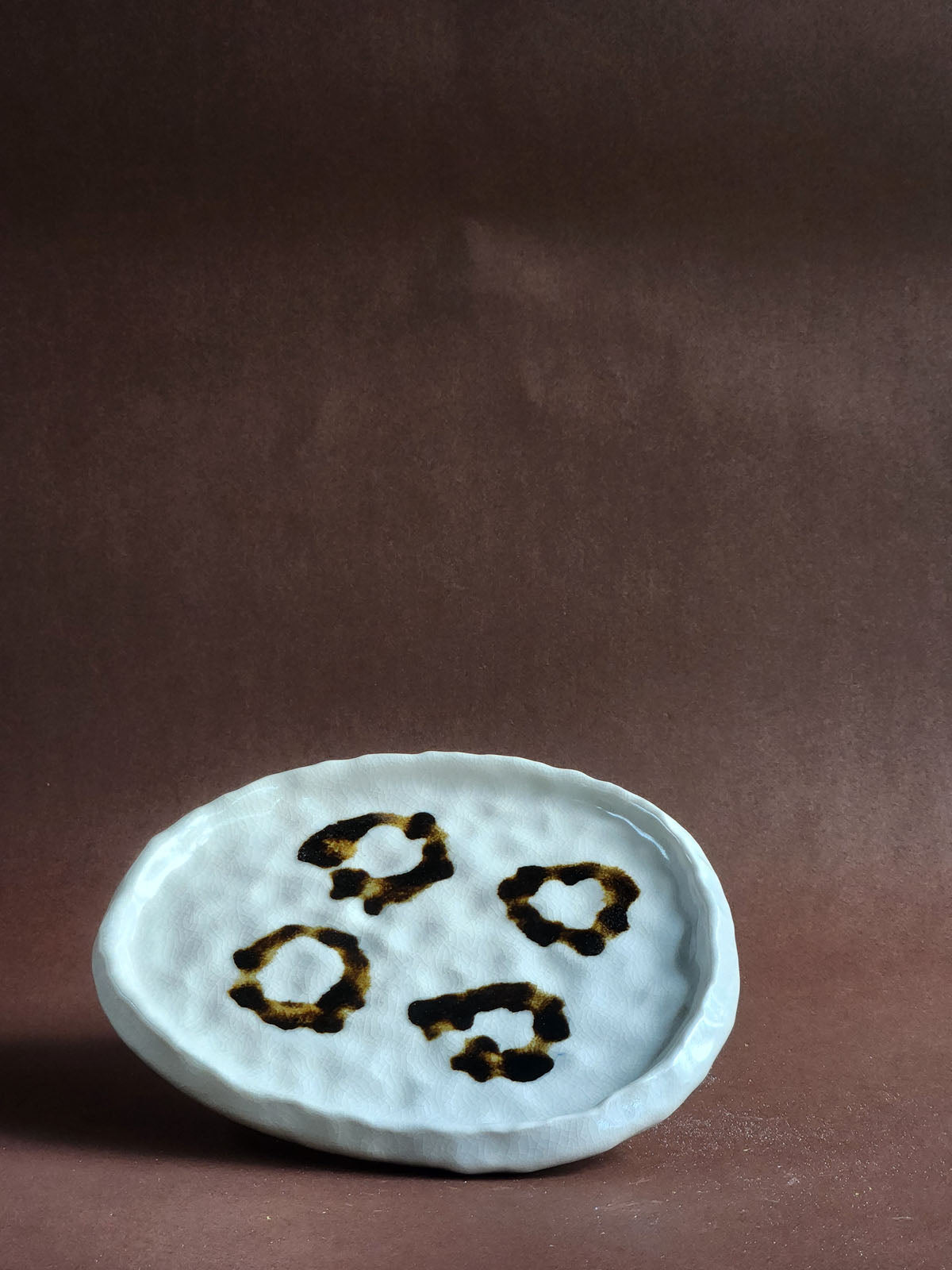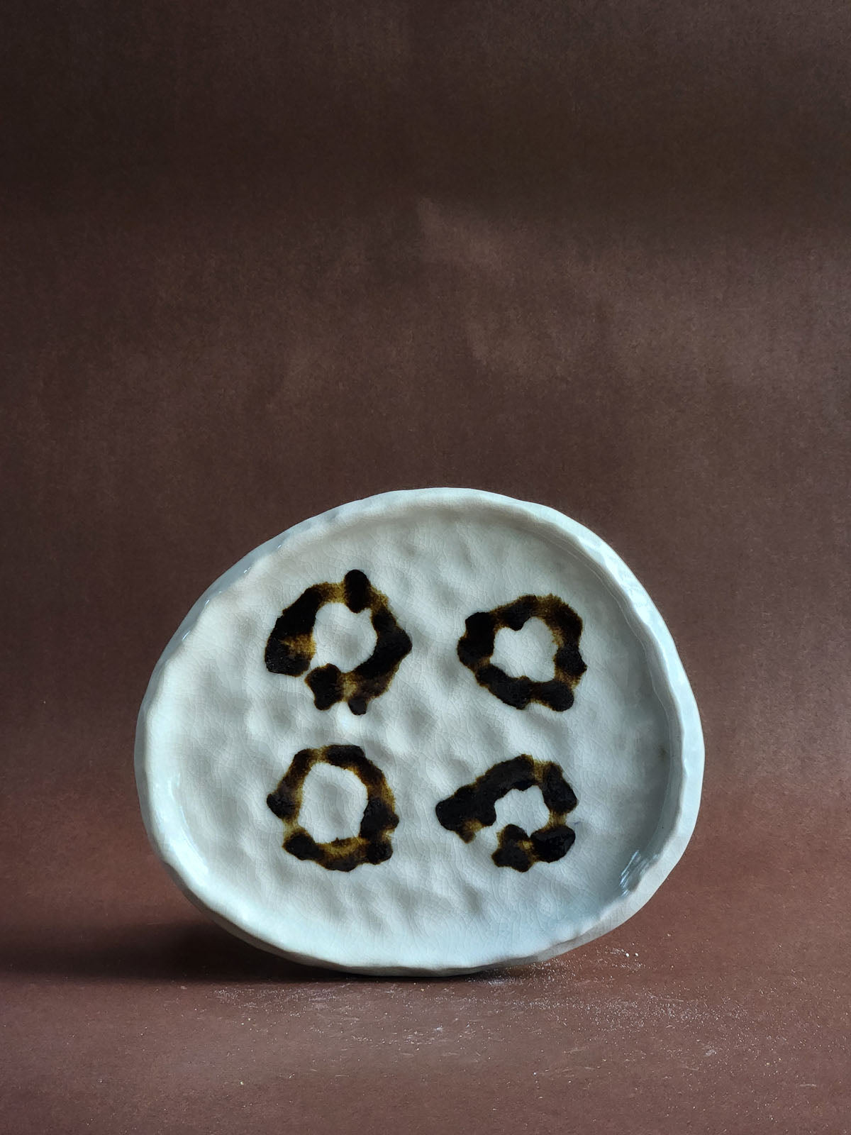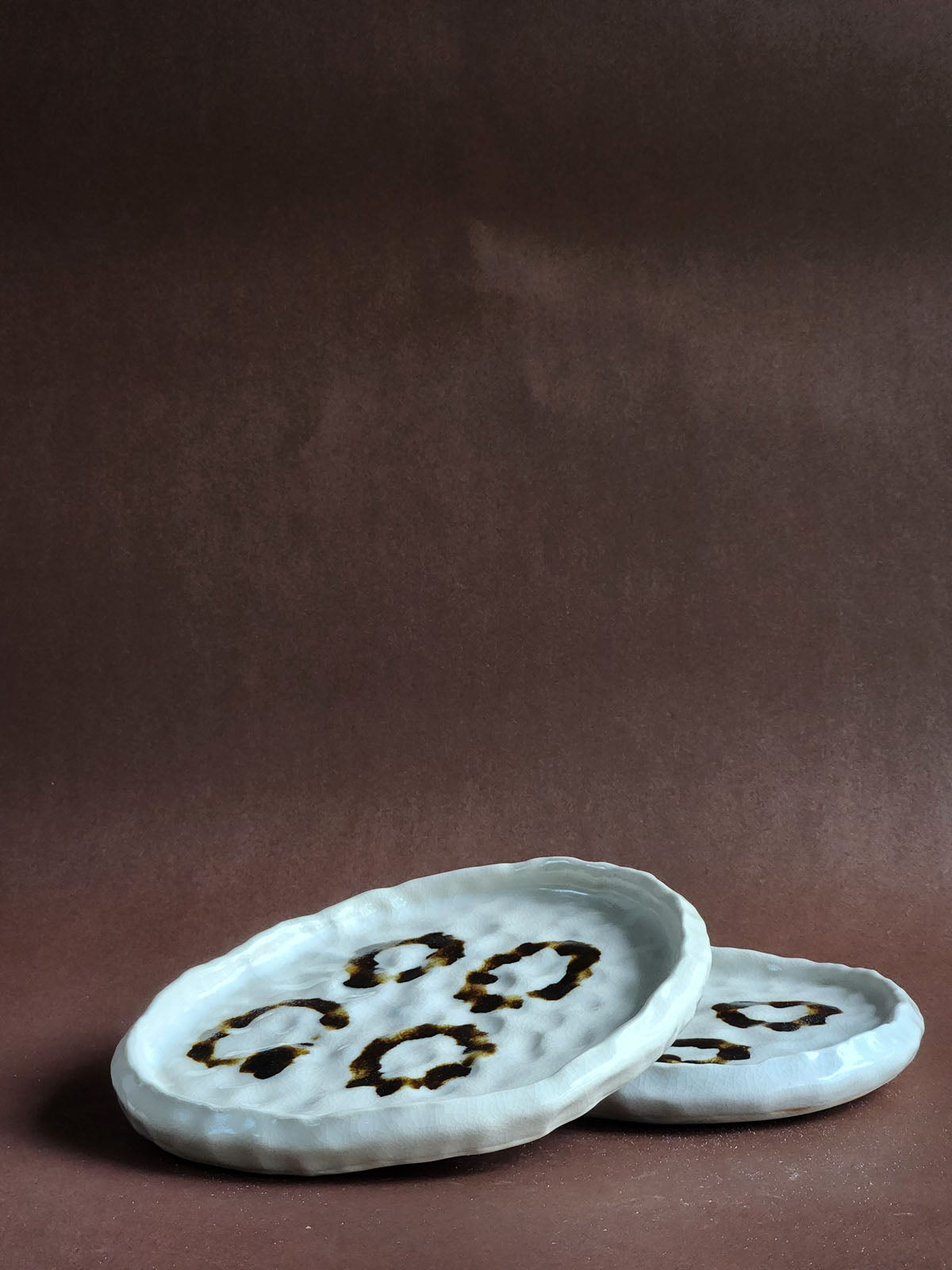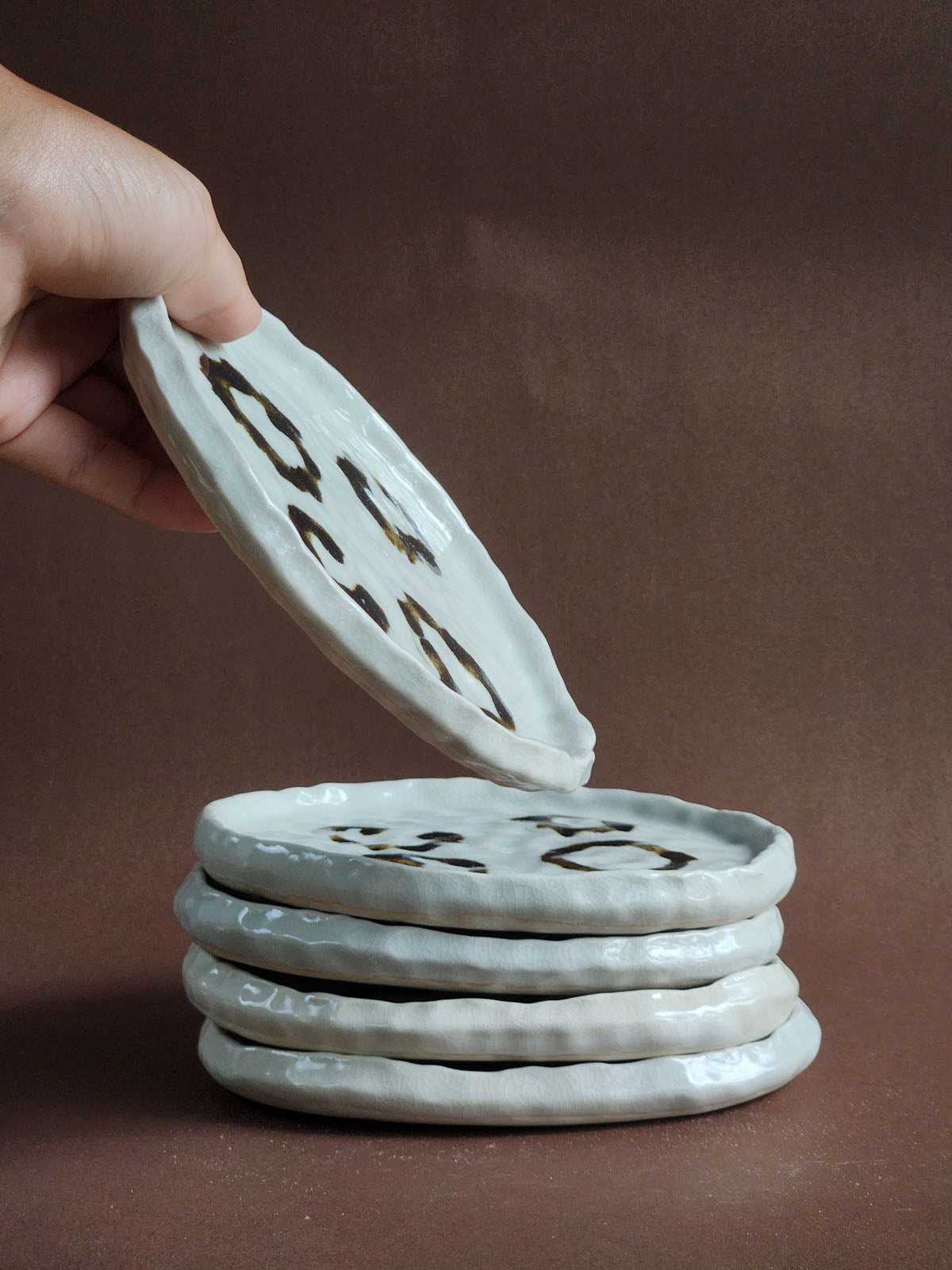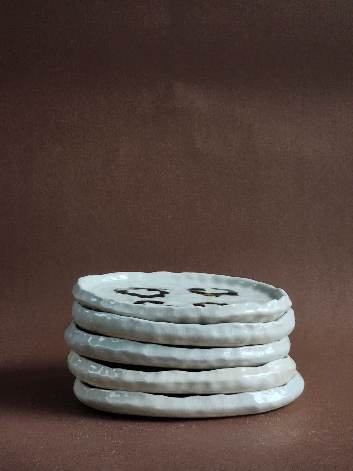 A platito made for the afternoon merienda or a slice of celebratory cake. Each one is handbuilt using clay slabs and repeatedly pinched to create texture and a lovely feel. Every piece has its own unique expression; no two are exactly alike.