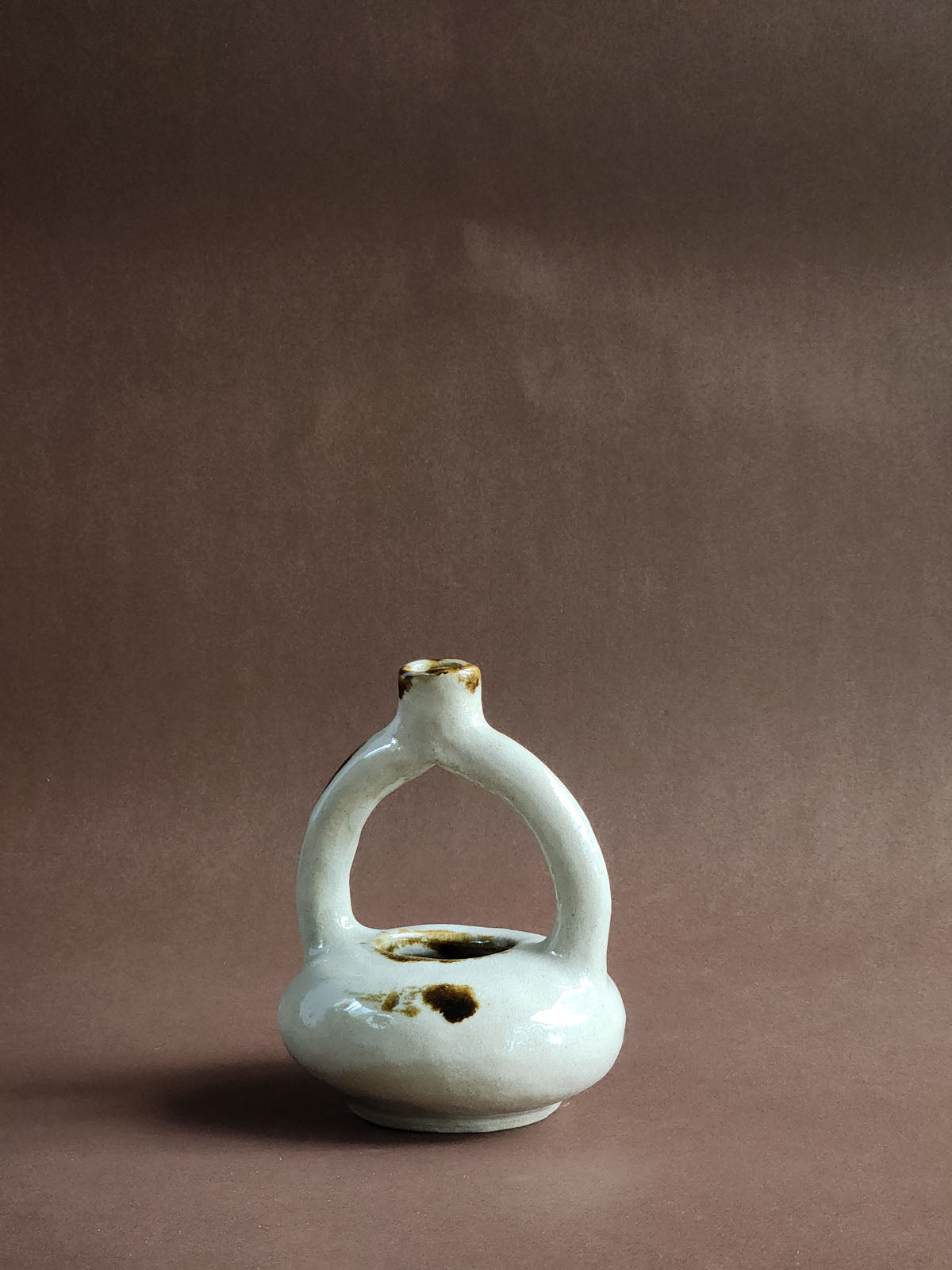 The Single Stem Vessel is intended to highlight a wispy stem or a small handful of cuttings. Made for thoughtful foraging — allowing us tune into the simple beauty all around us, if we look a little more closely. Handbuilt using clay coils. A ceremonial object and space decoration for daily rumination.